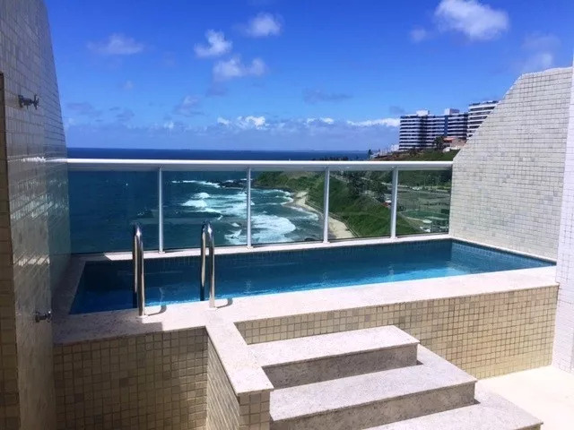 Na cobertura; quarto, sanitário, piscina, área de lazer. Sempre com uma vista esplêndida para o mar de Ondina.