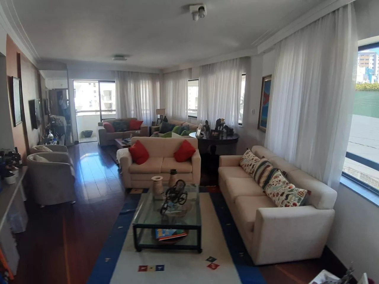Excelente apartamento 04 suítes, três ambientes de sala, varanda, suíte principal com closet, nascente total, 03 vagas de garagem privativas, dependência completa, condomínio com portaria 24 horas, piscina, churrasqueira, apenas um apartamento por andar.