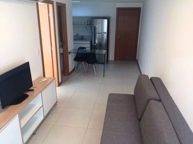 Deslumbrante apartamento 1/4 e sala mobiliado, frente para o mar na Barra, excelente infraestrutura, acabamento de primeira, varanda, excelente localização.