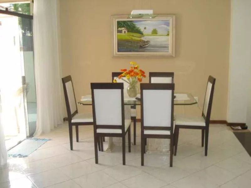 Casa com 03 quartos em Lauro de Freitas, sendo 01 suíte master, 04 vagas de garagem, 02 salas, 300m² de área construída em um terreno de 329m². 02 varandas, armários nos quartos, dependência completa, piscina, quadra poliesportiva.